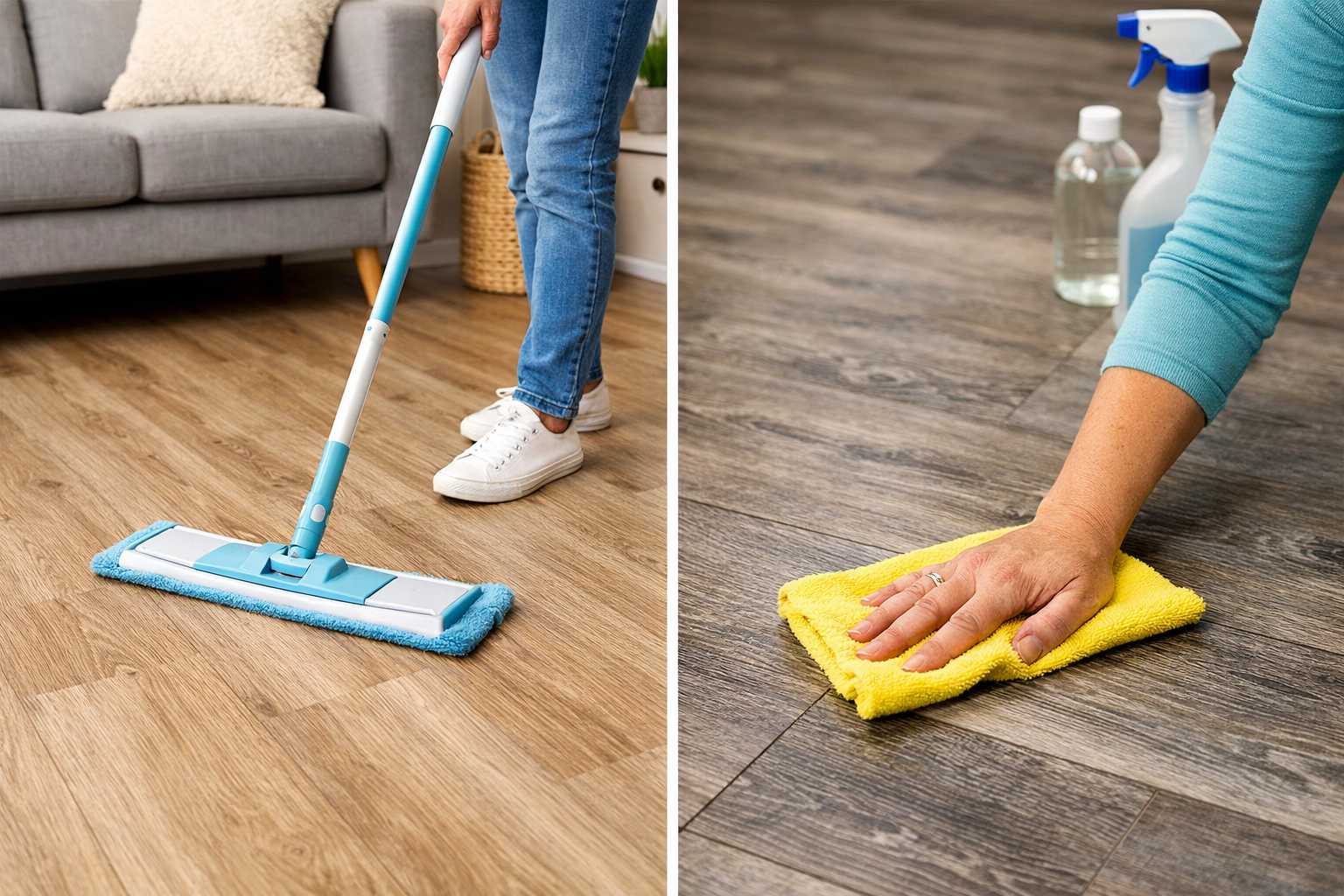 light mop on laminate flooring and light cloth on LVP